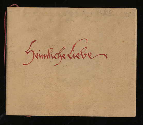 Handschrift – Heimliche Liebe. O.J., um 1920. Querformat, ca. 11 x 13,5 cm. 4 Seiten Handschrift in rot und schwarz. Lose in handbeschriebenem Papierumschlag eingelegt. Handschrift [von Fritz Kuhlmann]. Kuhlmann stand der Arbeitsschulbewegung nahe und verfaßte mehrere Bücher zum Thema Schrift und Schreiben. Die (auf „alt“ eingefärbten) Blätter hier in Original-Handschrift mit schwarzer und roter Tinte.