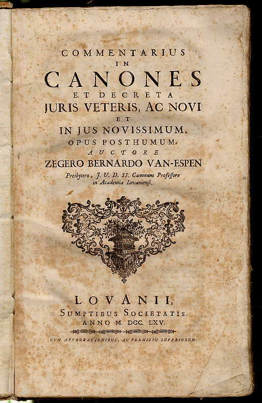 Espen, Commentarius in canones et decreta juris veteris, ac novie et in jus novi