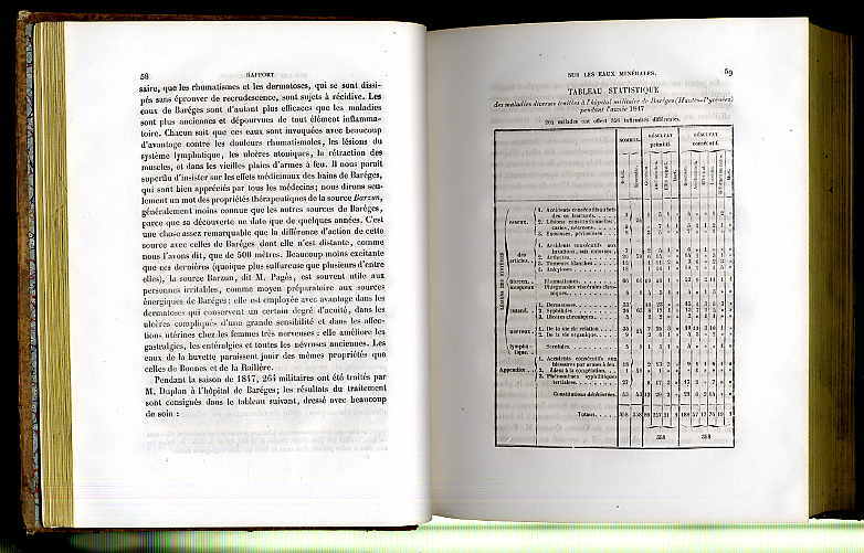 Memoires de l’Académie royale de Médecine. Tome quinzième. Paris, J.B. Baillière, 1850. Ca. 26 x 20 cm. (6) S., XXXVI S., 852 Seiten. Mit 5 lithographierten mehrfach gefalteten Tafeln. Halblederband der Zeit mit Rückengoldprägung. U.a.: Fr. Dubois: Èloge D’Antoine Dubois; Patissier: Rapport fait au nom de la commission des eaux minérales, pour les années 1847 et 1848; Sée: De la chorée, Rapports du rhumatisme et des maladies du coeur avec les affections nerveuses et convulsives; P.-C. Huguier: Mémoire sur les maladies des appareils sécréteurs des organtes génitaux externes de la femme (5 Tafeln). Nummernaufkleber auf Vorderdeckel. Stempelabdruck auf Titelblatt und letzter Seite. Rücken und Kanten bestoßen. Innen leicht stockfleckig. Text in französisch.