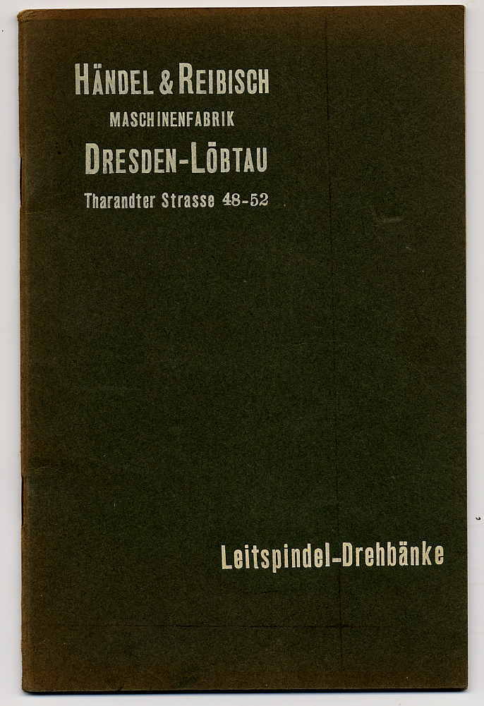 Händel & Reibisch: Maschinenfabrik Dresden-Löbtau – Leitspindel-Drehbänke. O.J., um 1900. Ca. 22 x 14,5 cm. 40 Seiten. Mit zahlreichen Abbildungen. Orig.-Broschur. Preisliste für Leitspindel-Drehbänke. Ab Seite 34 freier Platz für „Notizen“. Gutes Exemplar.