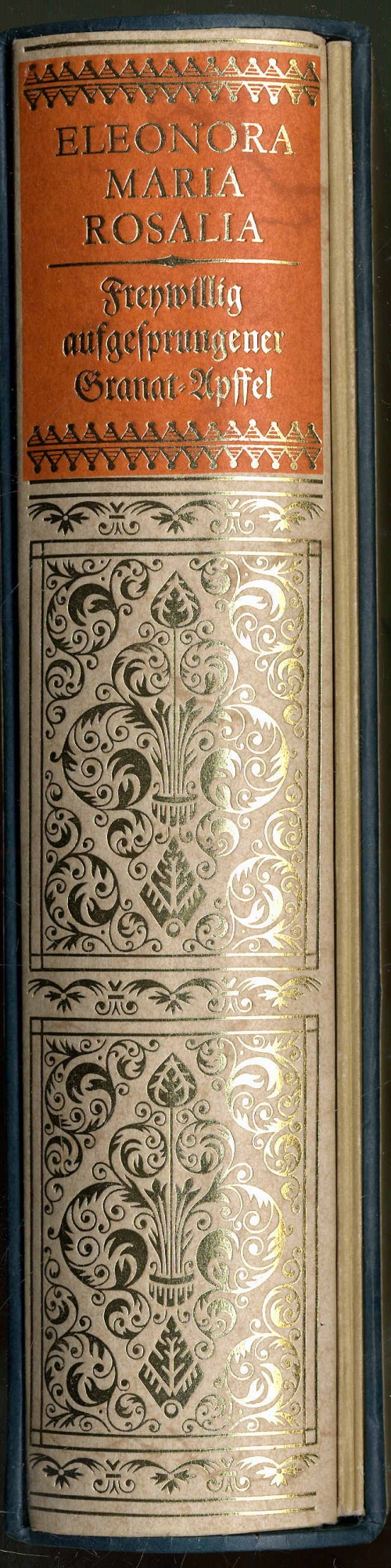 Eleonora Maria Rosalia zu Troppau und Jägerndorff: Freywillig aufgesprungener Granat-Apffel des Christlichen Samariters. Oder: Aus Christlicher liebe des nächsten eröffnete Geheimnisse vieler vortrefflicher bewährter artzneyen, aus berühmter leib-ärzten, oder Medicin-Doctorn, lang gepflogener erfahrenheit. Samt einer Diaet, wie sich bey jeder kranckheit in essen und trincken zu verhalten; Wie auch einem neuen Koch-Buch, In welchem allerhand rare und denen patienten zu verschiedenen kranckheiten ersprießliche speisen vorgeschrieben werden. Und Begleitheft mit Beiträgen von Marie-Elisabeth Fritze und Hans-Joachim Poeckern. München, Heimeran Verlag, 1978, Nachdruck der Ausgabe Leipzig 1709. Ca. 21 x 18 cm. (2) Seiten, 588 Seiten, (10) Seiten; 36 Seiten Begleitheft. Orig.-Pappband bzw. Orig.-Broschur (Begleitheft) beide Bände im Original-Schuber. Exemplar 524/1000. „Die Verfasserin steht nämlich noch immer in jener uralten Tradition, der zufolge Heil- und Kochkunst kaum zu trennen ist“. Schönes Exemplar.