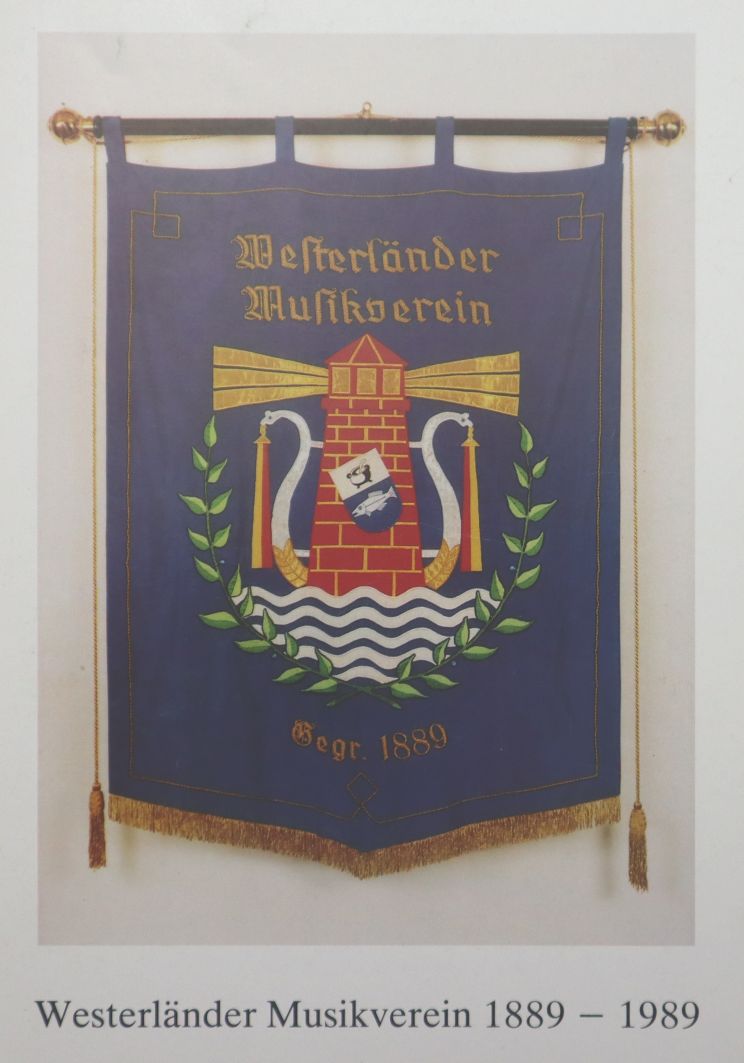 Wedemeyer, Manfred: 100 Jahre Westerländer Musikverein 1889-1989. Ein Beitrag zur Geschichte der Geselligkeit auf Sylt. Westerland, 1989. Ca. 24,5 x 16,5 cm. 112 Seiten. Mit zahlreichen Abbildungen. Farbig illustrierter Orig.-Karton. Gutes Exemplar.