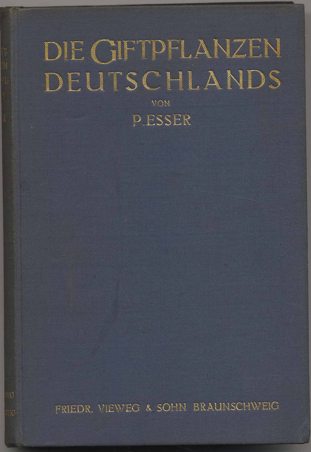 Esser, P[eter]: Die Giftpflanzen Deutschlands. Braunschweig, Friedrich Vieweg und Sohn, 1910. Ca. 23 x 15 cm. XXII S., 212 S., (2) Seiten. Mit 660 Einzeldarstellungen auf 113 zum Text gehörenden (lithographierten) Farbentafeln. Grauer Orig.-Leinenband mit Goldprägung. MIt schönen, dekorativen Farbtafeln. Gutes Exemplar.
