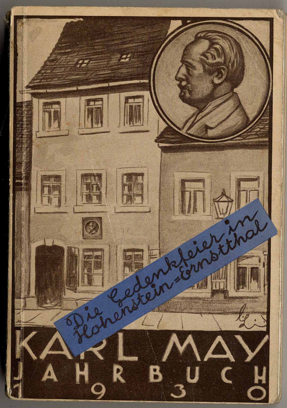 Karl May-Jahrbuch 1930 – Gurlitt, Ludwig und E.A. Schmid (Hrsg.): Karl-May-Jahrbuch 1930. 13. Jahr. Radebeul, Karl-May-Verlag, [1930]. Ca. 18,5 x 12,5 cm. 508 S., (4) Seiten. Mit Titelbild und Abbildungen auf Tafeln. Farbig illustrierter Orig.-Karton. U.a.: Die Gedenktafel in Karl Mays Geburtsstadt; Die Karl-May-Straße in Hhenstein-Ernstthal; A. Biese: Ein Geständnis über Karl May; M. Casella: Kunstschützentum bei Karl May; B. Wandolleck: Karl May und die Waffen; M. Baumann: Karl May und die Jugend; A. Berger: Auf Karl Mays Spuren am oberen Nil. Einbandkanten und Rücken etwas bestoßen, Schnitt leicht fleckig.