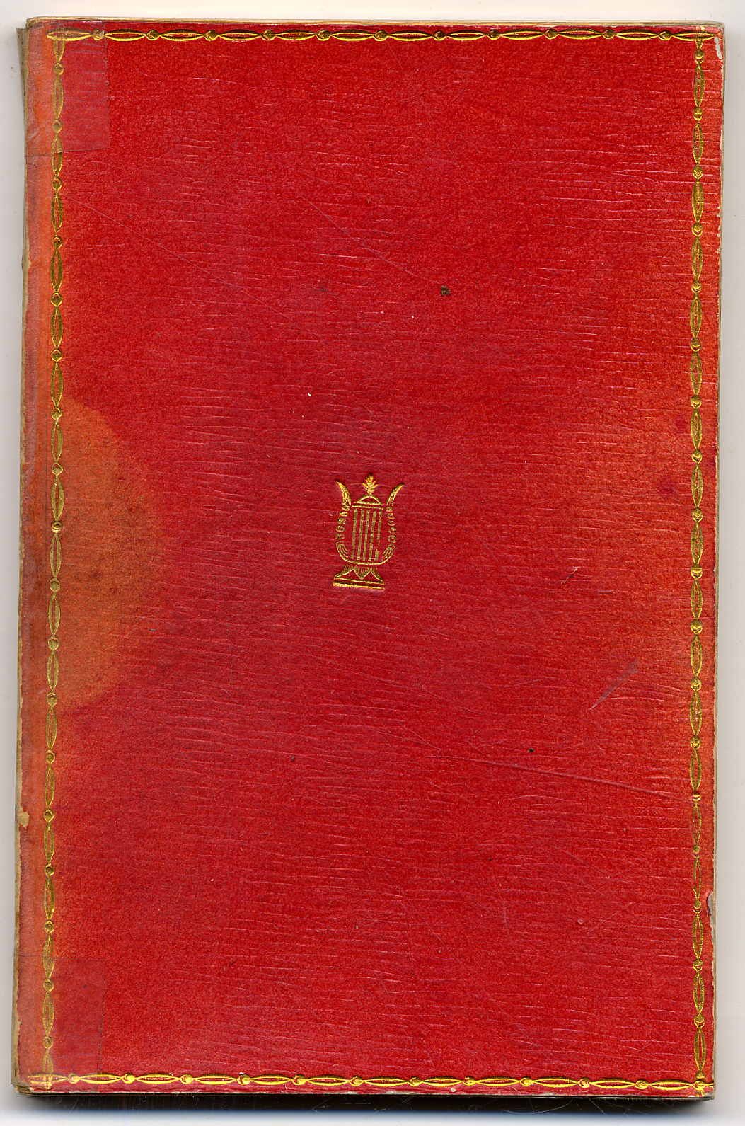 [Usteri, Johann Martin]: Künstlerlieder. Basel, Wilhelm Haas, 1809. Ca. 15 x 9 cm. (4) S., 109 S., (2) Seiten. Mit gestochenem Titel und 32 Kupfervignetten, 36 Seiten Melodien in Typendruck. Roter Pappband der Zeit mit Goldprägung. Erste Ausgabe. Goedeke VI,486,4. Der Schweizerischen Künstlergesellschaft in Zofingen gewidmet. „… zierlich gedruckten, mit zahlreichen Vignetten schön ausgestatteten Sammlung der Künstlerlieder … welche nicht durch den Buchhandel bekannt geworden, durch treffliche Gedichte von Hegner, Usteri, Heß, Appenzeller, Hünerwadel, Kotzebue, Veith u.a. sich allgemein empfiehlt.“ (Morgenblatt für gebildete Stände, 1816). Rücken etwas bestoßen, Seiten teils etwas stockfleckig.