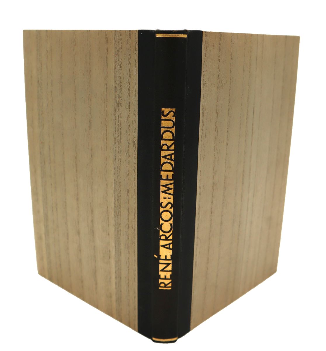 Arcos, René: Medardus. Leipzig, Insel-Verlag, 1930. Ca. 23,5 x 15,5 cm. 99 S., (3) Seiten. Mit einem Aquarell als Frontispiz und 9 Holzschnitten von Frans Masereel. Orig.-Halblederband. Ex. 160/300. Das Titelblatt – wie meist – mit dem gebräunten Abklatsch des Titelbildes gegenüber, sonst schönes Exemplar. Sarkowski 42.