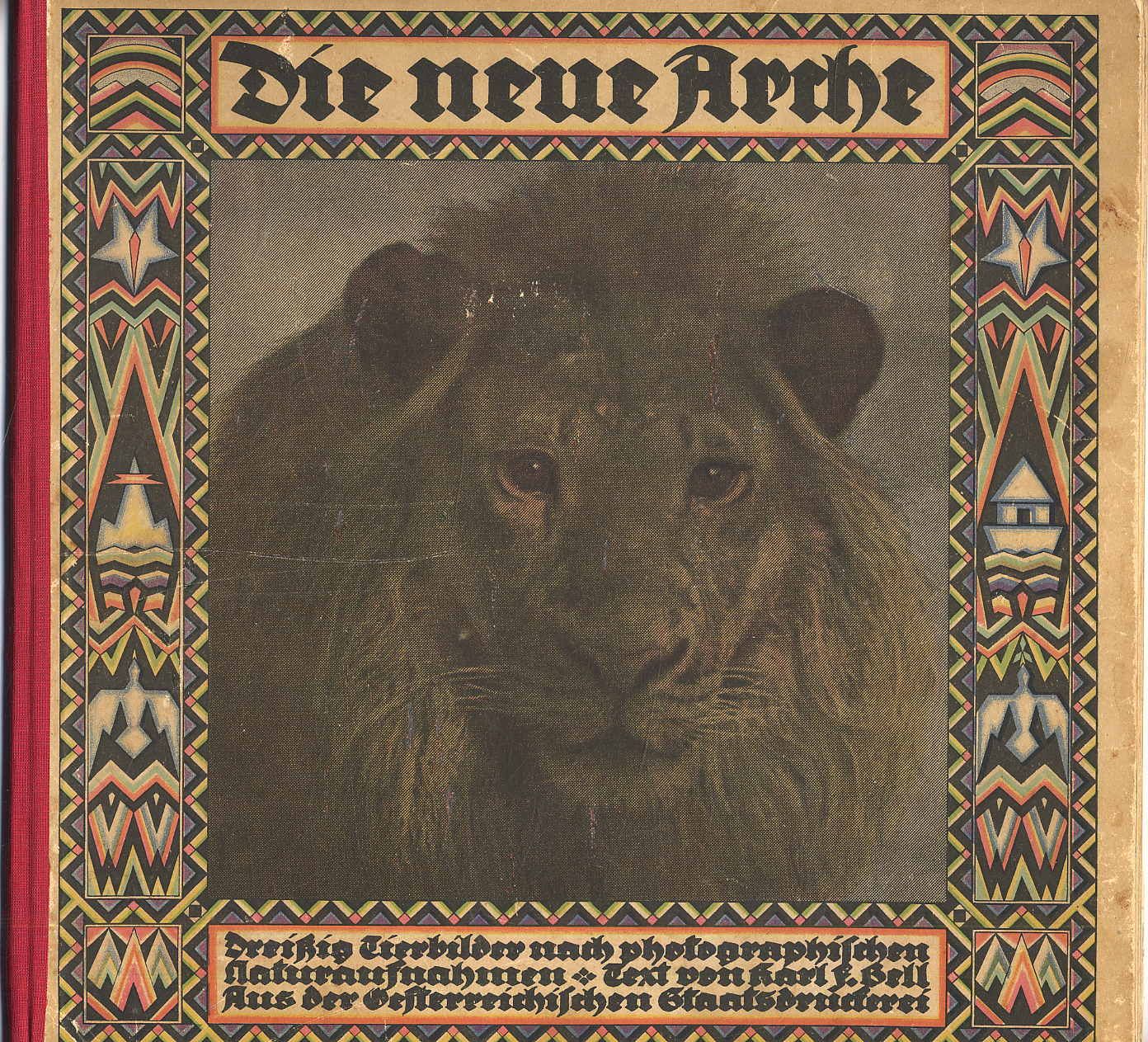 Bell, Karl F. (Text): Die neue Arche. Dreißig Tierbilder nach photographischen Naturaufnahmen. 2. Auflage, 11.-20. Tsd. Wien, Druck und Verlag der Österreichischen Staatsdruckerei, 1932. Ca. 32 x 31,5 cm. (34) Seiten. Mit 30 großformatigen farbigen Abbildungen. Farbig illustr. Orig.-Halbleinenband. Einband etwas berieben, Hinterdeckel etwas fleckig. Zwei Blätter durch alten Klebestreifen am Falz gebräunt.Tierbilder von Zoo- und Haustieren, z.B. Elefant, Nashorn, Riesenkänguruh, Zebra, Esel, Rind, Panther, Tiger, Eisbär, Nandu, Höckerschwan.