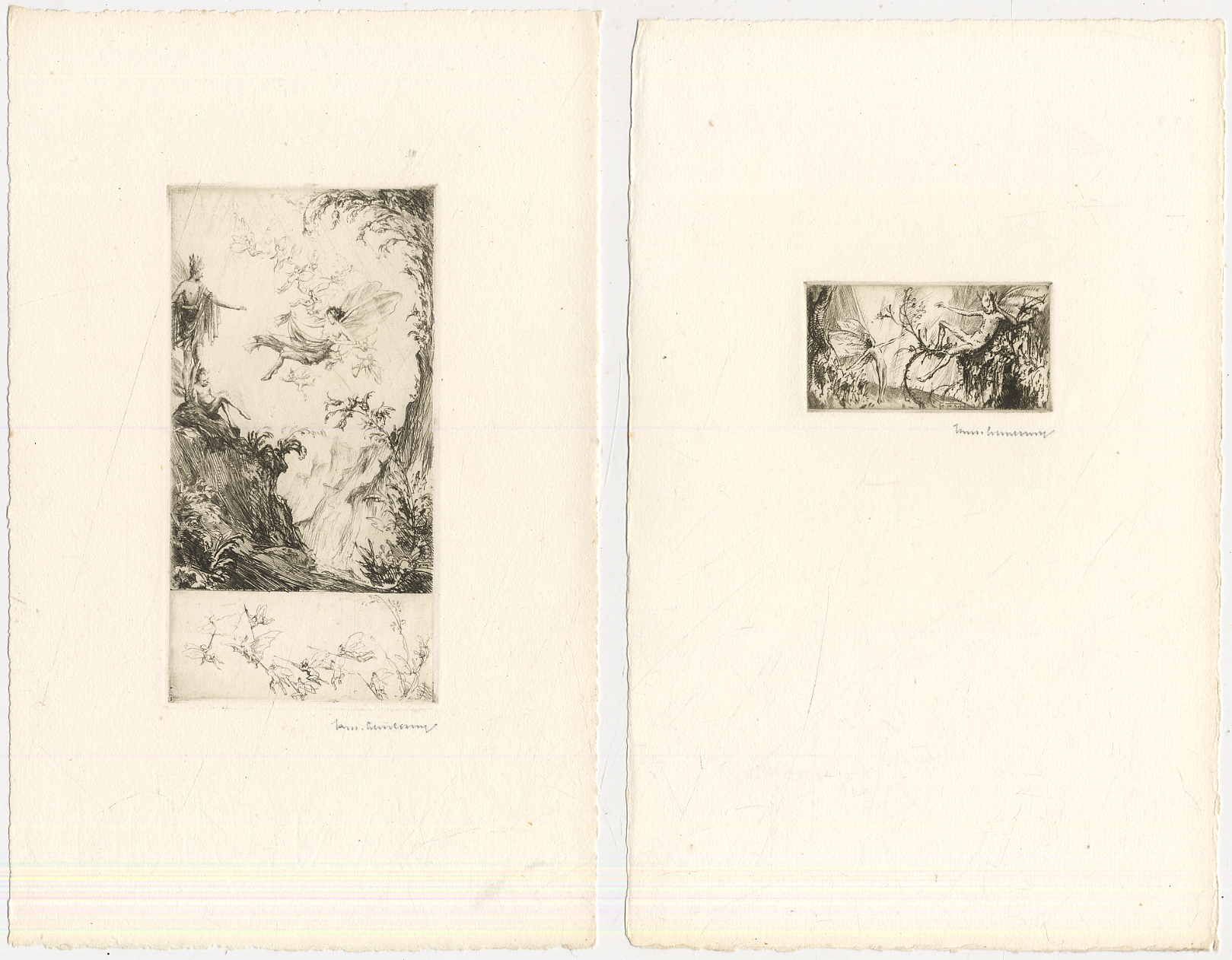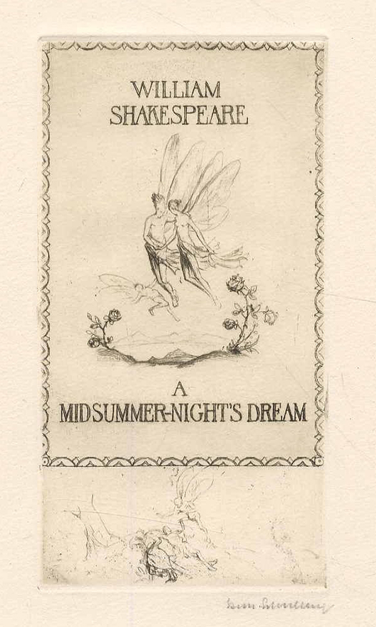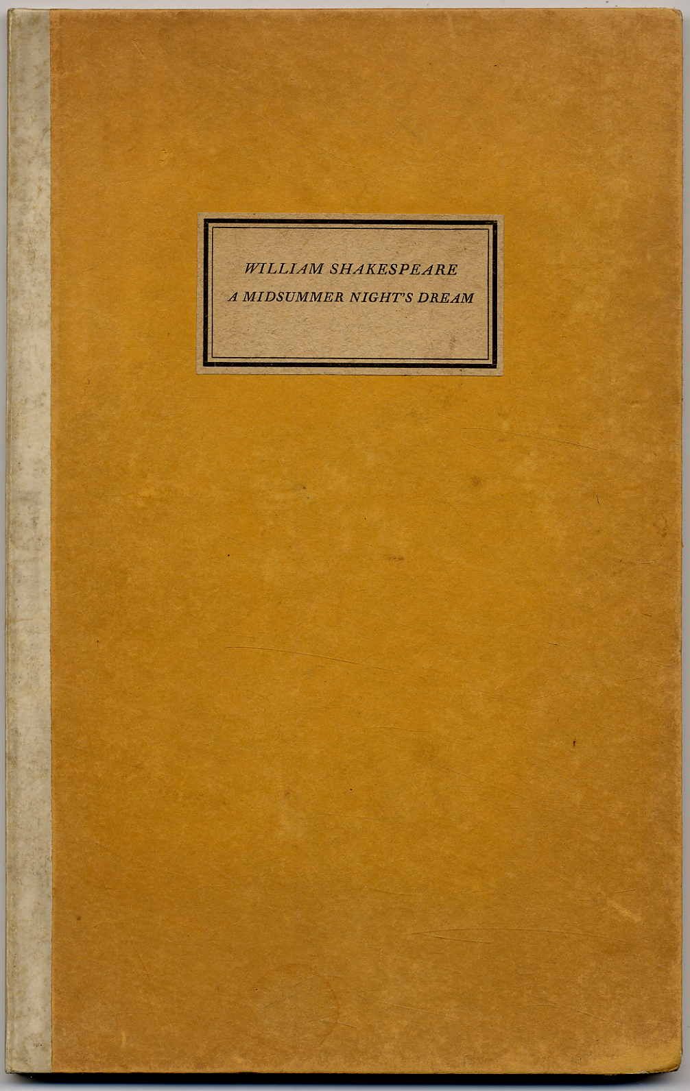 Shakespeare, William: A Midsummer-Night’s Dream. Suite mit 12 signierten Originalradierungen (teils mit Remarquen) von Karl Max Schultheiß. [Hellerau, Avalun u. London, J. & F. Bumpus, 1926]. Ca. 27 x 17,5 cm. 12 (incl. Titelblatt) signierte Originalradierungen von Karl Max Schultheiß. Original-Halbpergamentmappe. Extrasuite zu der in nur 12 Exemplaren erschienen Vorzugsausgabe der „Prinz Heinrich XXXIX. Reuss Edition of the Works of William Shakespeare“, Volume I. gehörende Mappe mit 12 von Schultheiß (1865-1961?) signierten Radierungen (die nicht im Buch zum Abdruck gelangten), teils mit Remarquen. Mappe etwas berieben und leicht angestaubt. Mappe, Innendeckel, Titelblatt und Inhaltsverzeichnis stockfleckig. Innendeckel mit Besitzvermerk. Radierungen sauber und gut, mit breitem weißen Rand. Sehr selten.