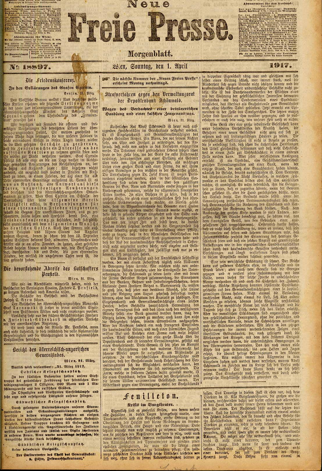 Neue Freie Presse. April 1917.