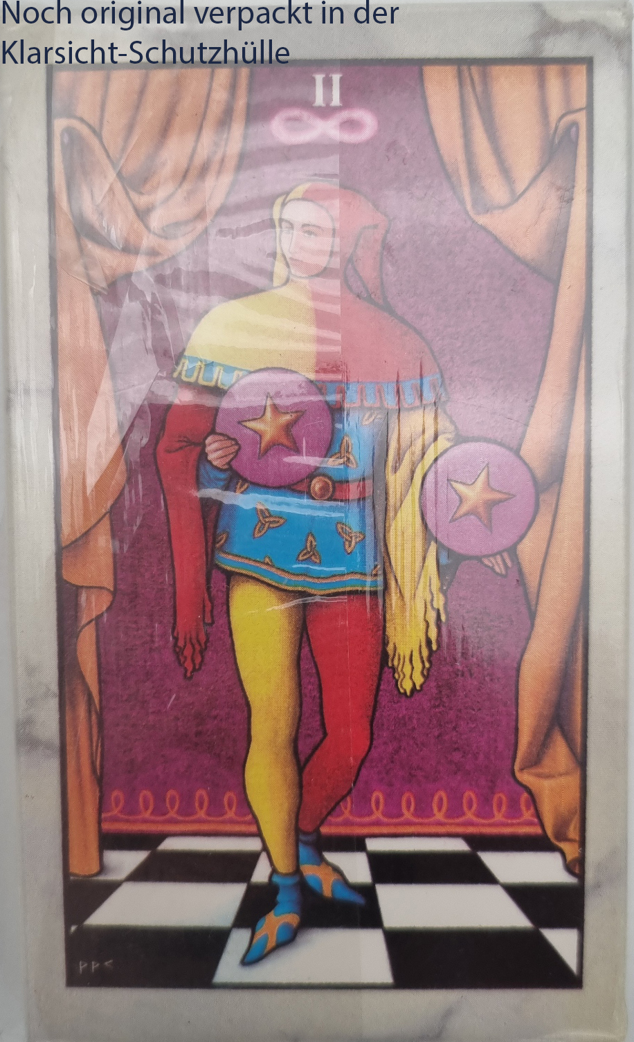Connolly, Eileen: Connolly Tarot Deck. Complete with introductions. Stamford, U.S. Games Systems, 1990. Ca. 12 x 7 cm. Originalverpackt, unbespielt. „Eileen Connolly, one of the world’s leading authorities on tarot and esoteric sciences, and her son, Peter Paul Connolly, present the inspirational Connolly Tarot Deck. The Connolly Tarot Deck brings the reader to a new level of consciousness. The cards are resplendent in color reminiscent of stained glass windows.“