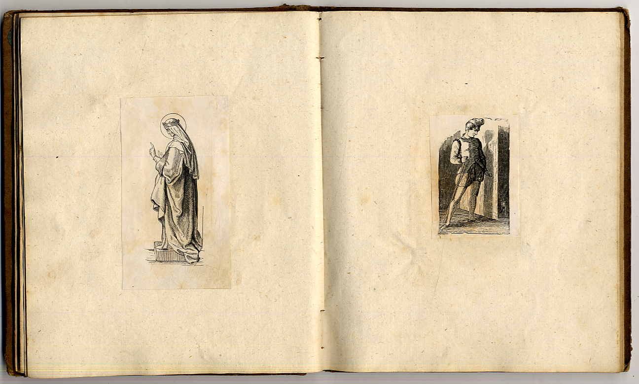 Holzschnitte – album N. 3 der von den Schülern verfertigten Holzschnitte. München im Monat July 1839. Ca. 21 x 17 cm. Mit ca. 95 einmontierten Holzschnitten (verschiedene Größen). Leinenband der Zeit. Einband und einige Seiten fleckig bzw. etwas stockfleckig. Auf der zweiten Seite werden folgende Holzstecher genannt: Pepi Wißmaier, Carl Henlein, Bernhard Goetz, Joh. Herburger, Franz Kreuzer. Eintrittsdaten zwischen Dezember 1837 und März 1840.