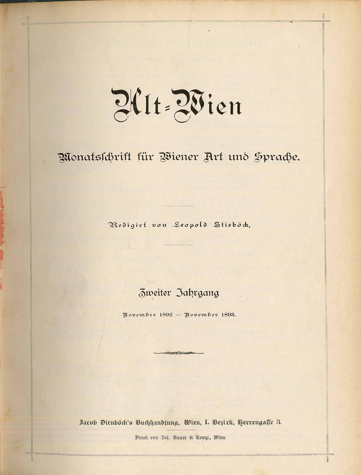 Stieböck, Alt-Wien. Monatsschrift für Wiener Art und Sprache.