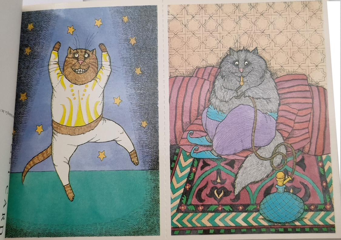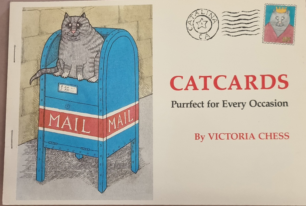 Chess, Victoria: Catcards. Purrfect for every occasion. New York, Macmillan, 1982. Querformat, ca. 14,5 x 21 cm. 12 Blätter mit 24 farbigen Katzenpostkarten von Victoria Chess. Farbig illustrierter Orig.-Karton. Immer zwei Karten sind durch eine Perforationslinie getrennt. „Classy cats, cool cats, calculating, canny and casual cats … are all here in this wonderful collection of 24 unique Catcards.“