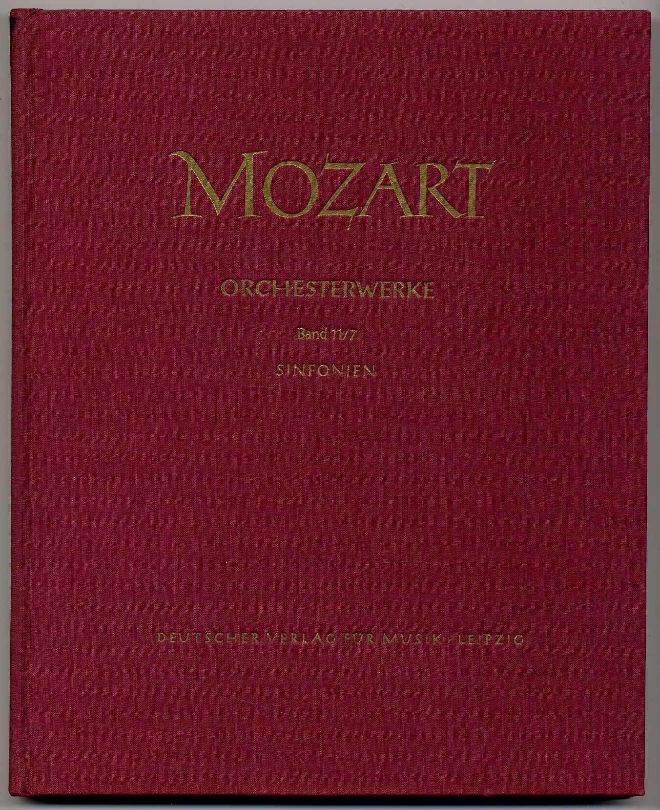 Mozart, Wolfgang Amadeus: Serie IV Orchesterwerke. Werkgruppe 11: Sinfonien. Band 7. Vorgelegt von Günter Hausswald. Leipzig, Deutscher Verlag für Musik, 1959. Ca. 33 x 25,5 cm. XVII S., (3) S., 131 Seiten Noten. Mit einigen Faksimiles. Roter Orig.-Leinenband. Aus der Reihe: Neue Ausgabe sämtlicher Werke in Verbindung mit den Mozartstädten Augsburg, Salzburg und Wien hrsgg. von der Internationalen Stiftung Mozarteum Salzburg. DVfM 4518. Partitur. Mit Einleitung zur Edition, Vorwort und Noten. Rücken etwas fleckig, sonst gutes gutes Exemplar.