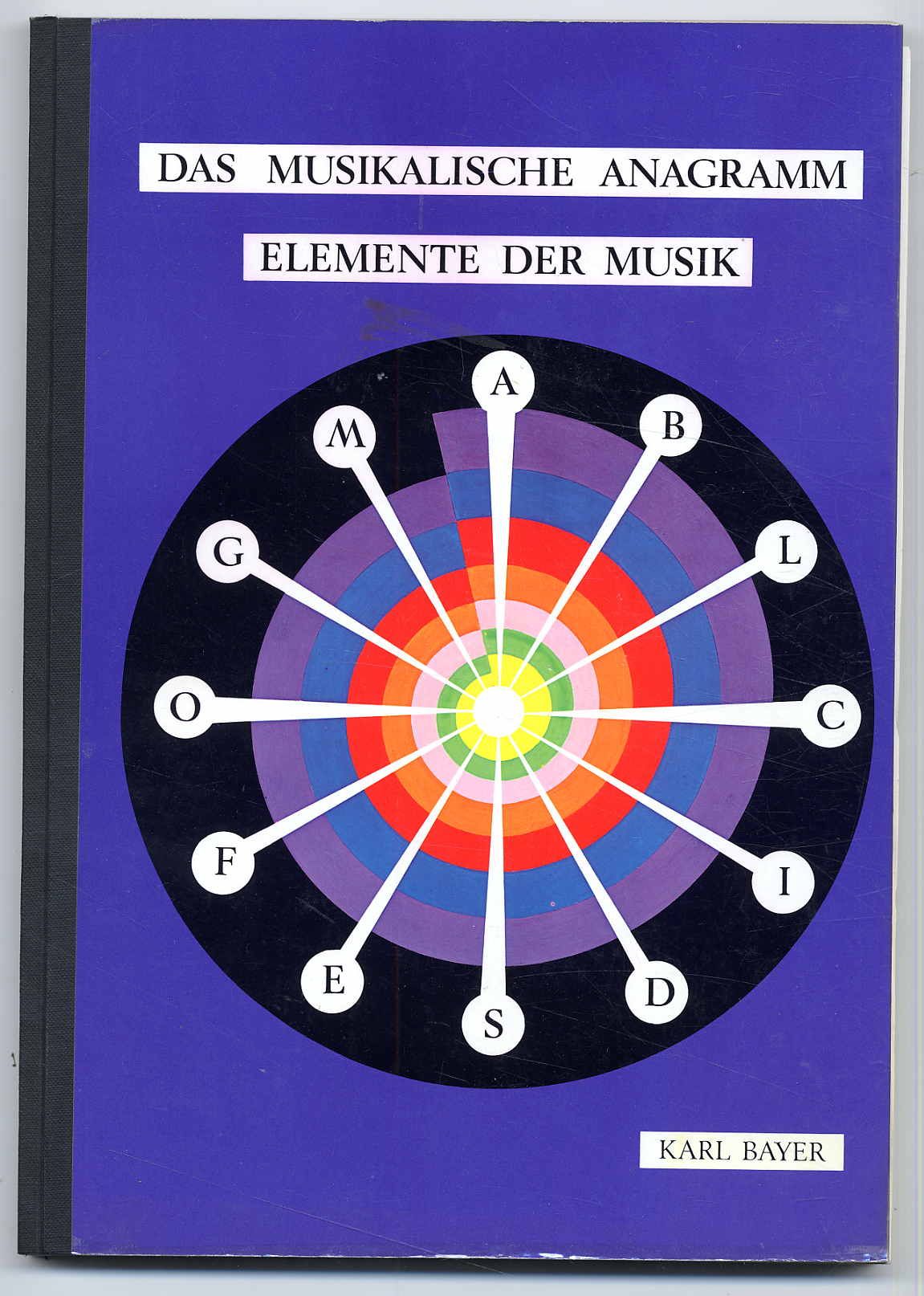 Bayer, Karl: Das musikalische Anagramm, Elemente der Musik. 1. Aufl. Lübeck, Verlag Karl Bayer, 1976. Ca. 28,5 x 20 cm. 193 Seiten. Mit Abbildungen, Notenbeispielen und einer Farbtafeln. Farbig illustr. Orig.-Halbleinenband. Beiegelegt: Nachtrag Lübeck 1. Mai 1978.