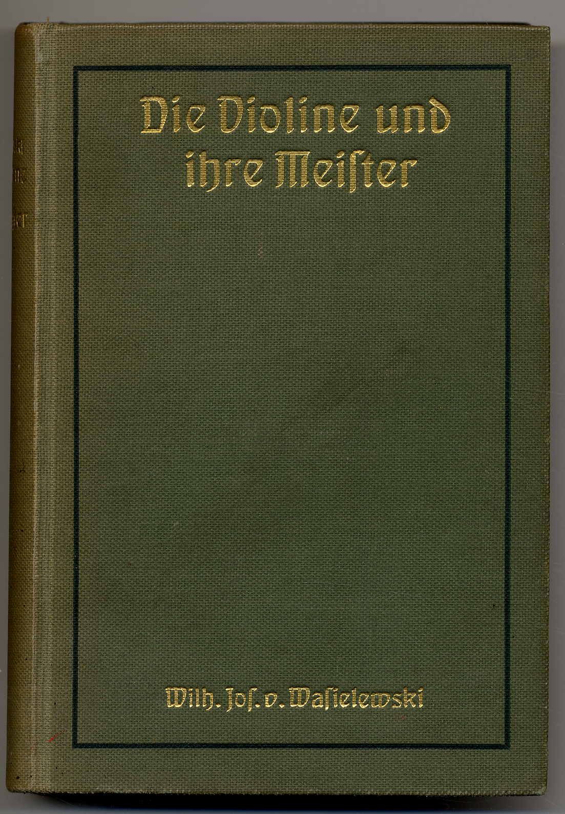 Wasielewski, Wilhelm Joseph von: Die Violine und ihre Meister. 5., wesentlich veränderte und vermehrte Auflage von Waldemar von Wasielewski. Leipzig, Breitkopf & Härtel, 1910. Ca. 22 x 15 cm. XIII S., 664 Seiten. Mit einigen Textillustrationen. Grüner Orig.-Leinenband. Einband etwas ausgeblichen. Mit Exlibris. Gutes Exemplar.