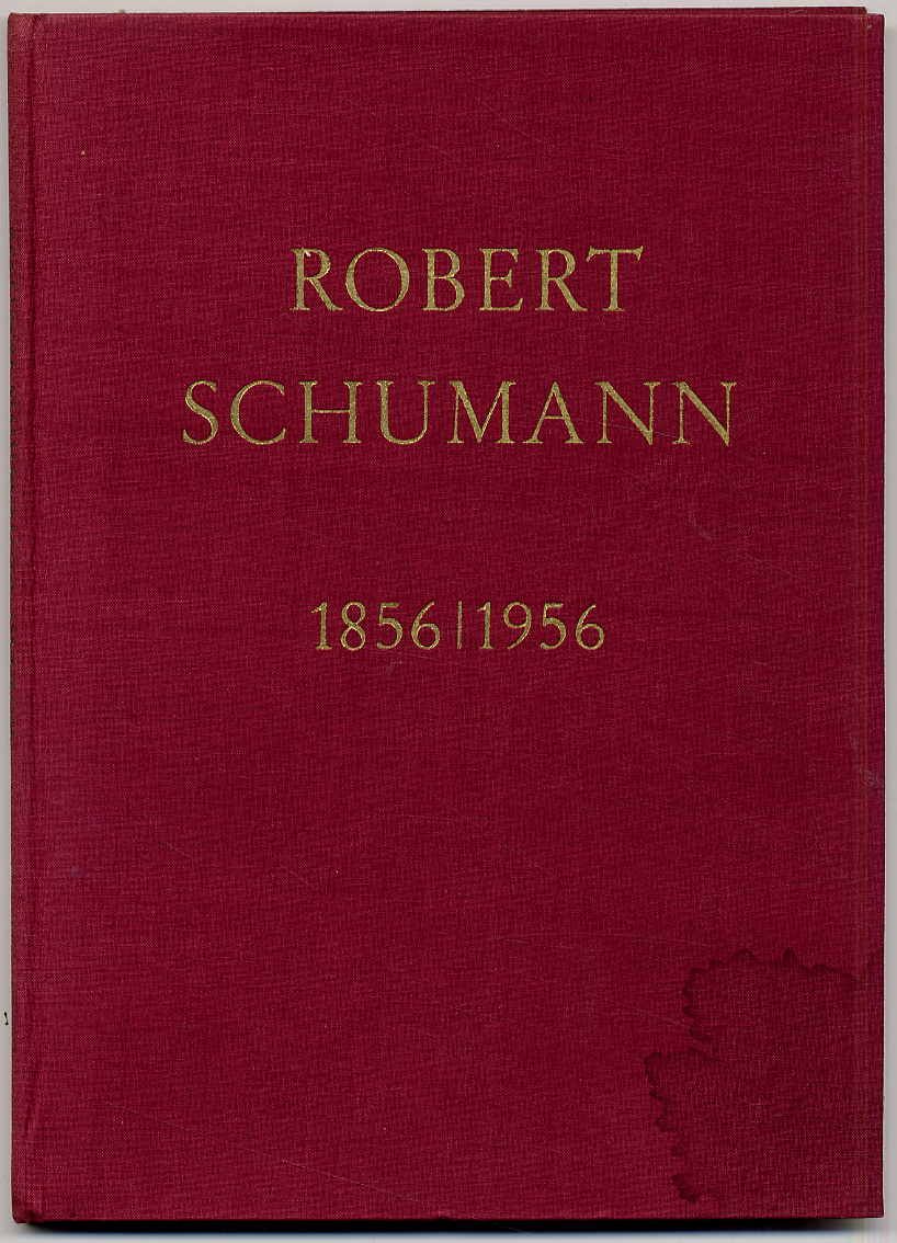 Schumann – Moser, Hans-Joachim und Eberhard Rehling (Hrsg.): Robert Schumann. Aus Anlass seines 100. Todestages. 1956. Ca. 30 x 22 cm. 180 S., (2) Seiten. Mit einigen Notenbeispielen. Roter Orig.-Leinenband. Vorderdeckel unten rechts etwas fleckig.