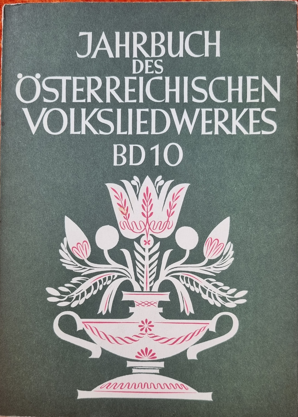 Klier, Karl M. u.a.: Jahrbuch des österreichischen Volksliedwerkes. Band X. Wien, Verlag des Bundesministeriums für Unterricht, 1961. Ca. 24 x 17 cm. (4) S., 163 Seiten. Mit 6 Tafelseiten. Mit Notenbeispielen. Illustrierter grüner originalkartonierter Einband. Einband leicht berieben. Aus dem Inhalt u.a.: Weltliche Flugblattlieder des 17. Jhdts.; Hochzeitsbräuche- und Lieder der burgenländischen Kroaten; Der Schuhplattler in Tirol.
