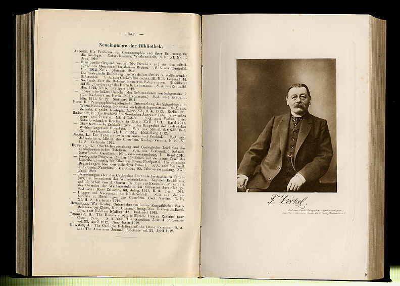 Zeitschrift der Deutschen Geologischen Gesellschaft. B – Monatsberichte. 64. Jahrgang, Hefte 1-12. 1912. Ca. 23 x 15 cm- 653 Seiten. Mit zahlreichen Illustrationen im Text und zwei Tafeln. Leinenband der Zeit mit Rückengoldprägung. U.a.: Beobachtungen in der Flyschzone Südbayerns; Das Senon von Boimstorf und Glentorf; Zur Geologie der Vall’Adrara; Über gegenwärtige tektonische Bewegungen in der Insel Hiddensöe (Rügen); Geologische Aufschlüsse des Stadtparkes in Winterhude und des Elbtunnels. Gutes Exemplar.