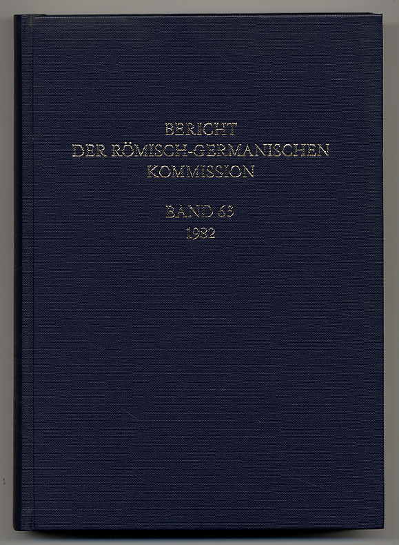 Bericht der Römisch-germanischen Kommission. Band 63, 1982. Mainz, Philipp v. Zabern, 1983. Ca. 27,5 x 19,5 cm. 427 S., (5) Seiten. Mit 168 Textabbildungen, 4 Tabellen und 6 Beilagen. Orig.-Leinenband. U.a.: P. F. Stary: Zur hallstattzeitlichen Beilbewaffnung des circum-alpinen Raumes; H. Schönberger: Moos-Burgstall: Ein neues Römerkastell; M. Müller-Wille: Königsgrab und Königsgrabkirche. Funde und Befunde im frühgeschichtl. und mittelalterlichen Nordeuropa. Gutes Exemplar.