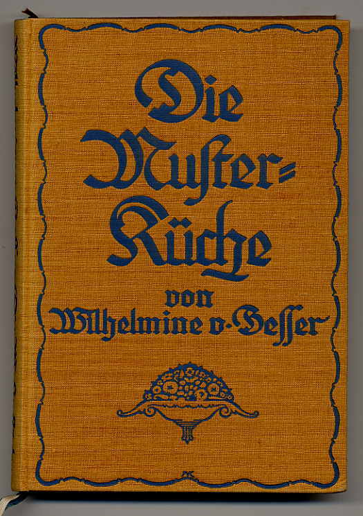 Besser, Wilhelmine v.: Die Musterküche. Stuttgart, W. Spemann, 1912. Ca. 24 x 16,5 cm. Mit 2.174 Rezepten. Orig.-Leinenband. „Kochbuch in Form eines Küchenzettels für alle Tage des Jahres. mit Rezeptnummern statt Seitenzahlen; das Sachregister auf blauem Papier in der Mitte des Buches.“ (Weiss 355). Z.B. für den 15. September: Mittags: Nierensuppe, Artischockenböden mit Hechtgulasch, gebratener Fasan mit Salat, Arrakgelee mit Kirschen; Abends: Kalbsrouladenscheiben mit Cumberlandreis, Melonenkaltschale. Mit handschriftlicher Widmung einer Mutter an ihr „lb. Mausl für den neuen Hausstand“. Gutes Exemplar.