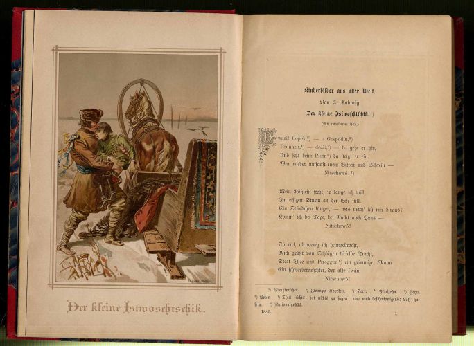 Hummel, Isabella (Hrsg.): Jugendblätter für Unterhaltung und Belehrung. Unter Mitwirkung vieler Jugendfreunde. 35. Jahrgang, 1889. München, Braun & Schneider, 1889. Ca. 22 x 15 cm. 576 Seiten. Mit 6 Farblithographien und 7 s/w Tafeln. Halbleinenband der Zeit. Gegründet von Isabella Braun. Mit Gedichten, Erzählungen, Märchen und Parabeln, Theaterstücken, Biographien, Belehrendes und Spiele, Sprüche, Bilder, Rätsel, Charaden etc. Einbandhinterdeckel und -kanten leicht beschabt. Seiten papierbedingt leicht gebräunt.