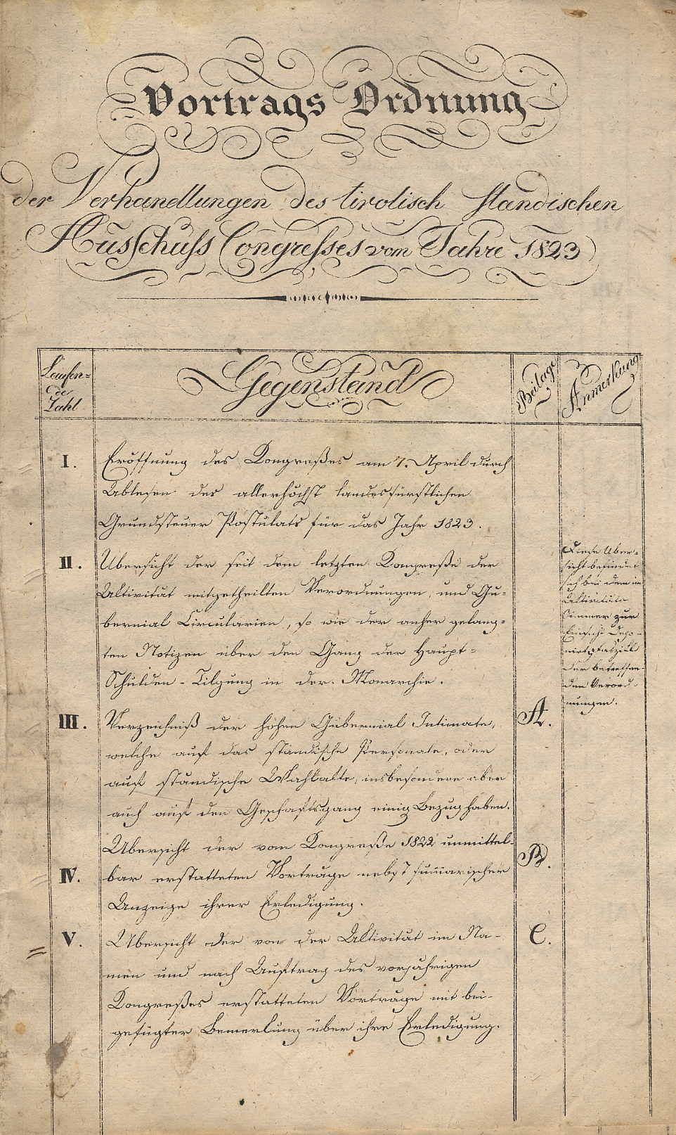 Vortrags-Ordnung der Verhandlungen des tirolisch staendischen Ausschuss-Congress…