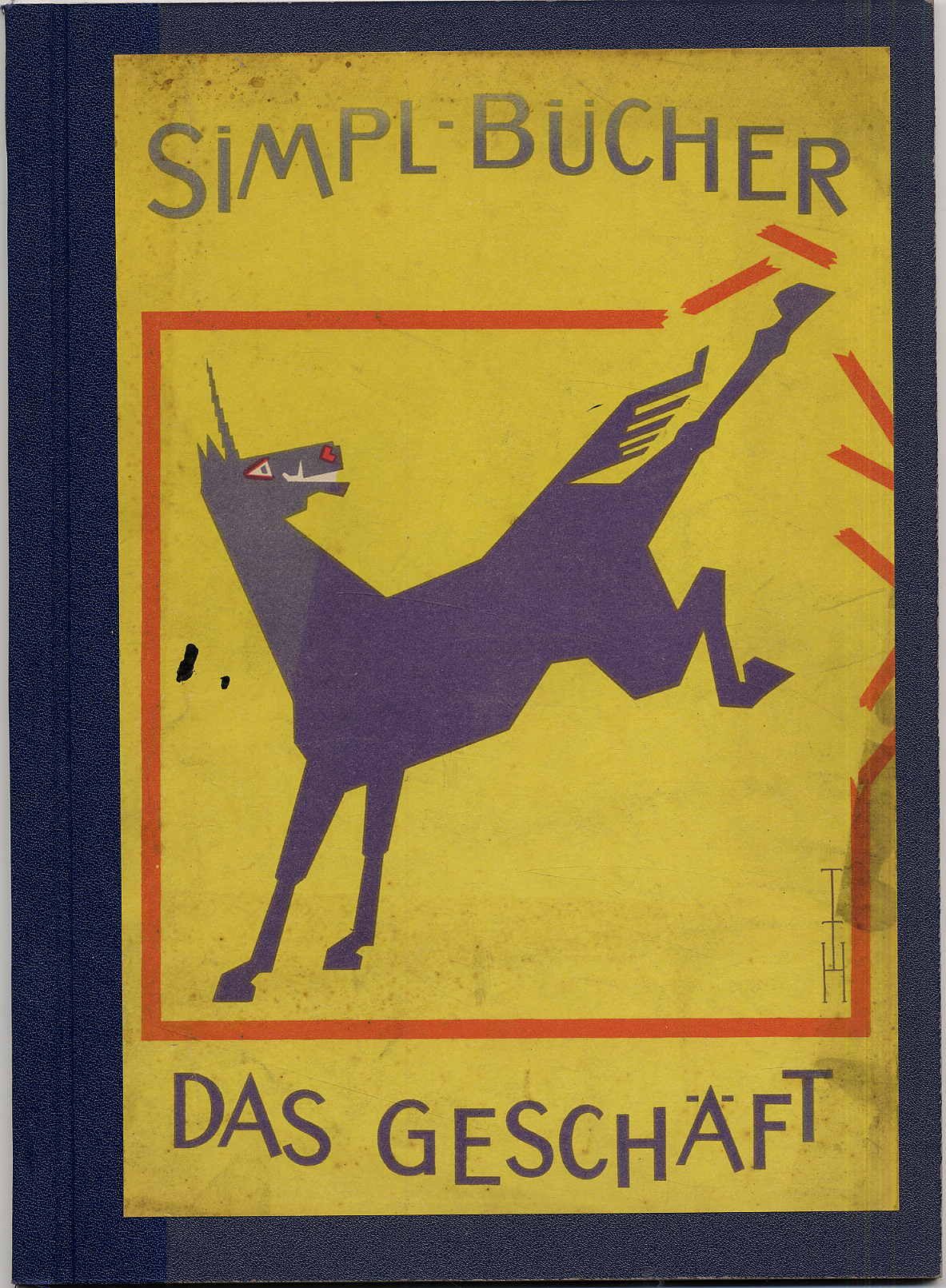 Simpl-Bücher. Band I: Das Geschäft. München, Simplicissimus-Verlag, [1924]. Ca. 33,5 x 24,5 cm. (2) S., 48 Seiten. Mit 49 meist ganzseitigen Illustrationen (einige davon farbig). Moderner Halbleinenband mit aufgezogenem Deckeltitel. Einbandillustration, Titelblatt und die letzten Seiten am Rand fleckig. Die Illustrationen aus der Zeitschrift Simplicissimus u.a. von Karl Arnold, Erich Schilling, Eduard Thöny, Wilhelm Schulz, Olaf Gulbransson, M. Dudocvich, Th. Th. Heine.