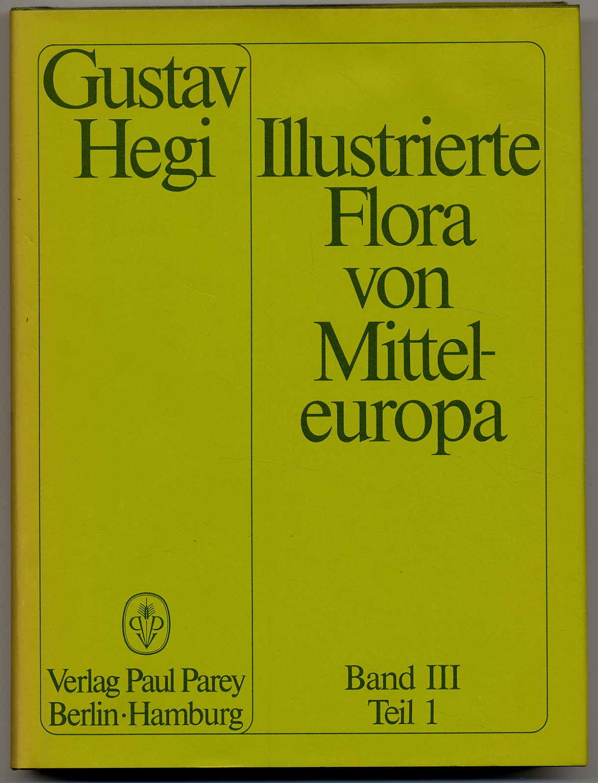 Hegi, Gustav: Illlustrierte Flora von MItteleuorpa. Pteridophyta Spermatophyta. Band III. Angiospermae Dicotyledones 1, Teil 1. 3. überarbeitete und erweiterte Auflage. Berlin und Hamburg, Paul Parey, 1981. Ca. 27 x 20 cm. VIII S., 504 S., (4) Seiten. Mit 194 Abbildungen und 25 Tafeln (davon 17 farbig). Grüner Orig.-Leinenband mit Goldprägung, mit Schutzumschlag. Sehr gutes Exemplar. Die Neuauflage des erstmals 1906 erschienen Grundlagenwerkes enthält neue Fundorte, neue Arten und Varietäten sowie neue Forschungsergebnisse und Bildmaterial nach dem neuesten Stand der Forschung.