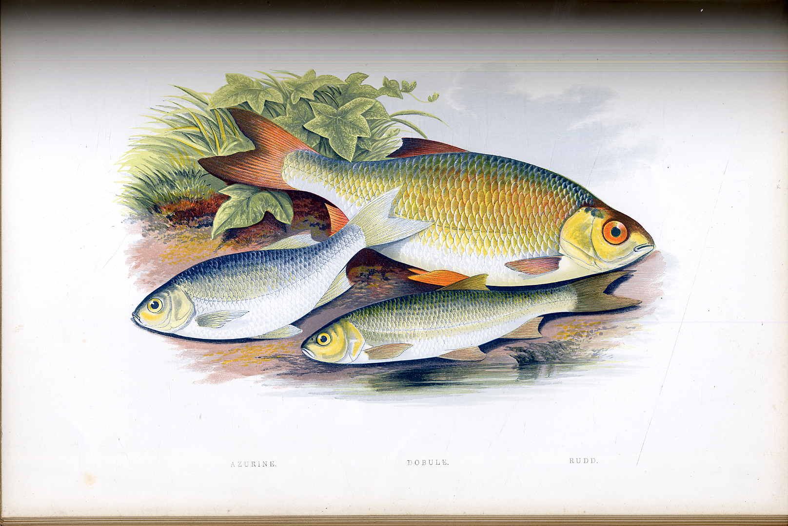 Houghton, W[illiam]: British fresh-water fishes. London, William Mackenzie, (1879). Ca. 37,5 x 28,5 cm. XXVI S., 204 Seiten, mit Textvignetten und Textillustratioen sowie 41 ganzseitigen Farbholzschnitten (illustrated with a coloured figure of each species draws from nature by A.F. Lydon and numerous engravings). Grüner Ganzledereinband mit reicher Deckelvergoldung und farbigem Rückenschild. Mit Goldschnitt. Erste Ausgabe. „Die Werke von … William Houghton mit ihren Farbholzschnitten nach Bildern seines Hauptmitarbeiters Frank Lydon zeugen vom hohen Rang seines Könnens.“ (Nissen S. 33 u. S. 73). Text in englisch. Rücken fachmännisch und schön erneuert. Einband leicht berieben. Mit prächtigen Farbtafeln illustriertes, dekorativ gebundenes Werk.