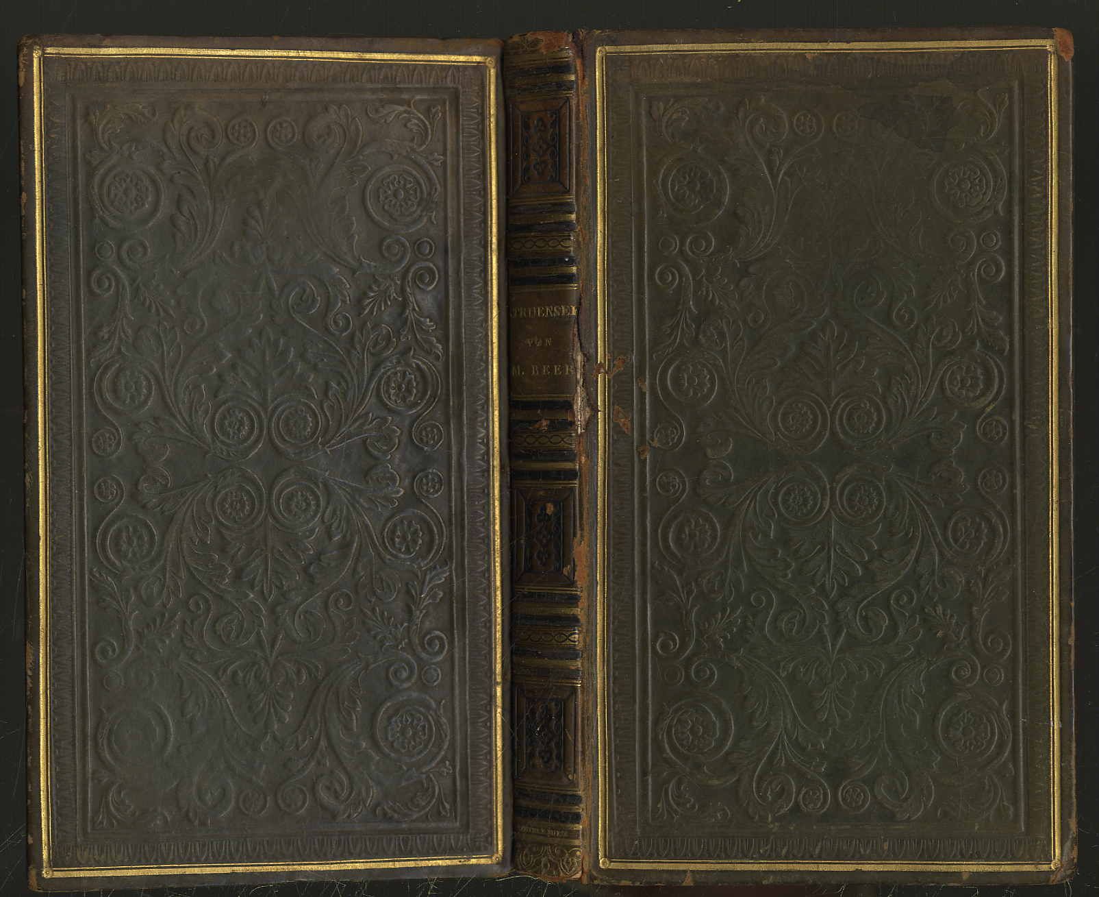 Beer, Michael: Struensee. Trauerspiel in fünf Aufzügen. Stuttgart und Tübiingen, J. G. Cotta’sche Buchhandlung, 1829. Ca. 18,5 x 11 cm. (8) S., 230 Seiten. Blindgeprägter Ledereinband der Zeit mit Deckelfileten und Rückenvergoldung. Goedeke VIII, 570, 9. ADB II, 250. Alter Namenszug auf Vorsatz. Rücken und Kanten bestoßen. Seiten teils stockfleckig. Ohne das Erratablatt am Schluss. Erste Ausgabe seines Trauerspiels, dem letzten Werk des mit 32 Jahren verstorbenen Berliner Dramatikers Michael Beer (1800-1833). Die Bühnenmusik zur Uraufführung am 27. März 1828 in München komponierte sein Bruder Giacomo Meyerbeer. Beers Drama „Struensee ist auf den tiefen Gegensatz zwischen fortschreitender Reform und widerstrebender junkerhafter Selbstsucht gebaut; aber der dramatische Aufbau ist unsicher, die Handlung wirr und in Episoden verzettelt. Michael Beer war von edler Gesinnung und feiner Bildung, aber ohne Tiefe und Ursprünglichkeit“ (ADB). „Bekannt wurde B. durch sein Trauerspiel „Struensee“ (1829, mit Musik seines Bruders), das unter Förderung König Ludwigs I. aufgeführt und auch von Goethe geschätzt wurde.“ (H. Maiworm, NDB 1, 737).