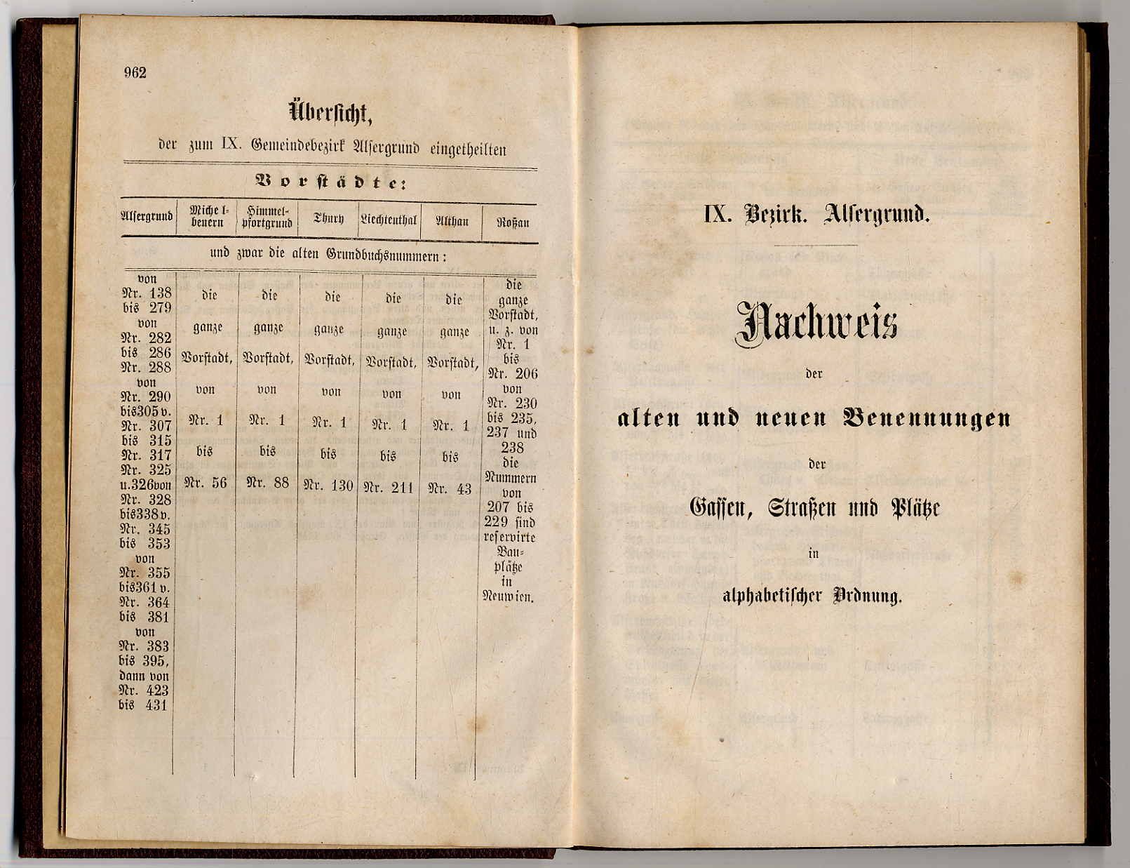 Winkler, IX. Bezirk. Alsergrund. Nachweis der alten und neuen Benennungen der Ga…