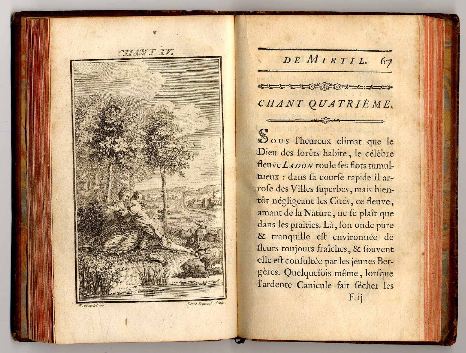 [Sacy, Claude Louis Michel de]: Les amours de Mirtiil. Constantinople [d.i. Paris, Joseph-Gérard Barbou], 1761. Ca. 15,5 x 9,5 cm. (8) S., 141 Seiten. Mit illustriertem Titel und 6 Kupferstichtafeln von Louis Legrand nach Gravelot. Ledereinband der Zeit mit Rückengoldprägung. Einbandkanten leicht bestoßen, Vorsätze etwas fleckig, jedoch gutes Exemplar. In französischer Sprache.