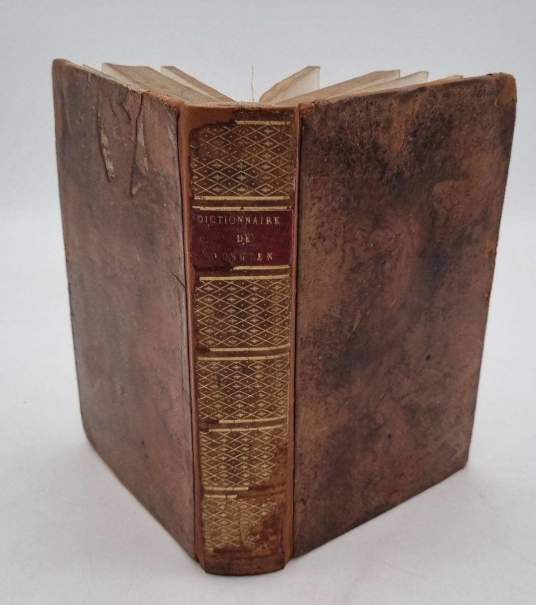 Vosgien – Goigoux – Dictioinnaire Géographique, ou description de toutes les parties du monde par Vosgien. Nouvelle Édition … précédée d’un précis de geographie par J. D. Goigoux. Paris, Menard et Desenne u. Ledentu, 1823. Ca. 21 x 13 cm. VII S., 672 Seiten. Mit 7 gestochenen Kupferstichkarten (davon eine mit zusätzlich 20 handcolorierten Flaggenabbildungen), 6 Tafeln mit Münzabbildungen. Halblederband der Zeit mit Rückengoldprägung. Rücken neu mit Leder unterlegt. Kleiner Aufleber auf Innendeckel, alter Namenszug auf Vorsatz. Minimal stockfleckig. Die Karten: 2 Weltkarten mit kleiner Umlaufbahn der Erde um die Sonne; Royaume de France (hier am Rand die farbigen Flaggen verschiedener Länder); Carte d’Afrique 1823; Amérique méridionale 1823; Amérique septentrionale 1823; Carte d’ Asie 1822; Carte d’Europe 1823.