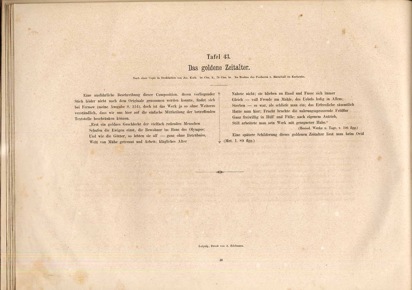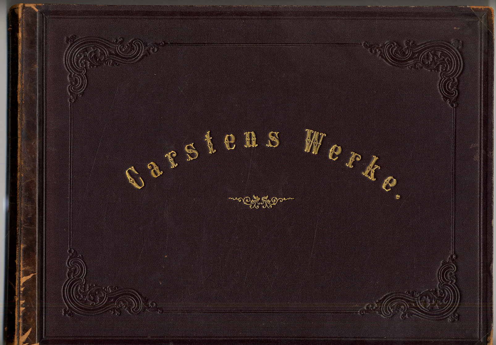 Carstens – Riegel, Herman (Hrsg.): Carstens Werke in ausgewählten Umriss-Stichen von Wilhelm Müller. Leipzig, Alphons Dürr, 1869. Querformat, ca. 29,5 x 41 cm. III S., 30 Seiten, 43 Tafelseiten. Brauner Halblederband mit Gold- und Blindprägung. Rücken und Kanten etwas beschabt. Seiten etwas stockfleckig.