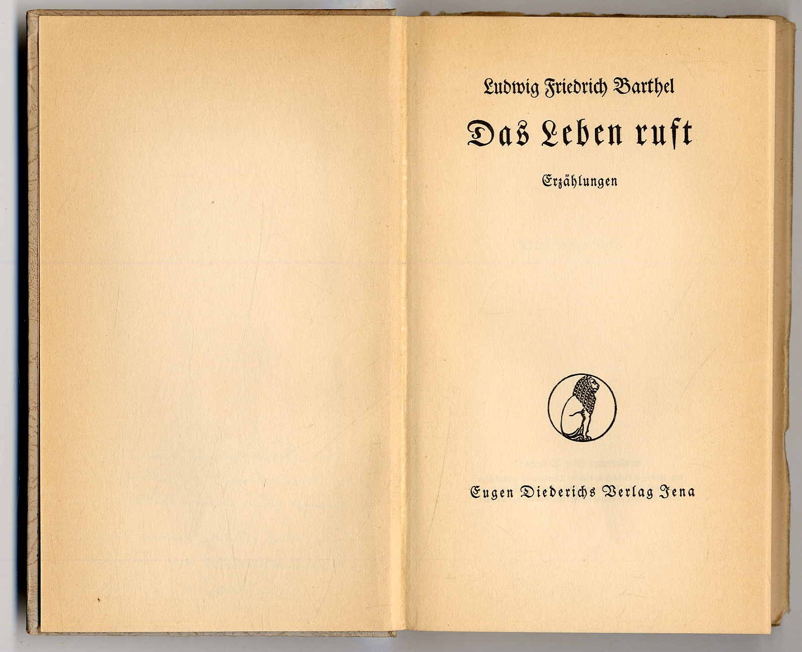 Barthel, Ludwig Friedrich: Das Leben ruft. Erzählungen. 1.-3. Tausend. Jena, Eugen Diederichs Verlag, 1935. Ca. 19 x 11,5 cm. 153 S., (3) Seiten. Orig.-Pappband. Erste Ausgabe. WG 10. Mit mehrzeiliger handschriftlicher Widmung von Ludwig Friedrich Barthel (1898-1962). Seiten papierbedingt leicht gebräunt.