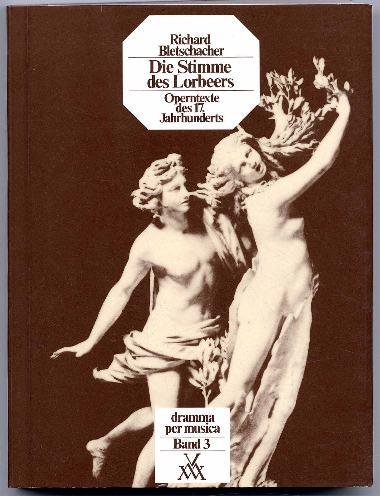 Bletschacher, Richard: Die Stimme des Lorbeers. Operntexte des 17. Jahrhunderts. Wien, Musikwissenschaftlicher Verlag, 1990. Ca. 23 x 17 cm. 420 S., (4) Seiten. Illustrierter orig.-kartonierter Einband. Aus der Reihe: dramma per musica Band 3. Mit Berichtigungszettel.