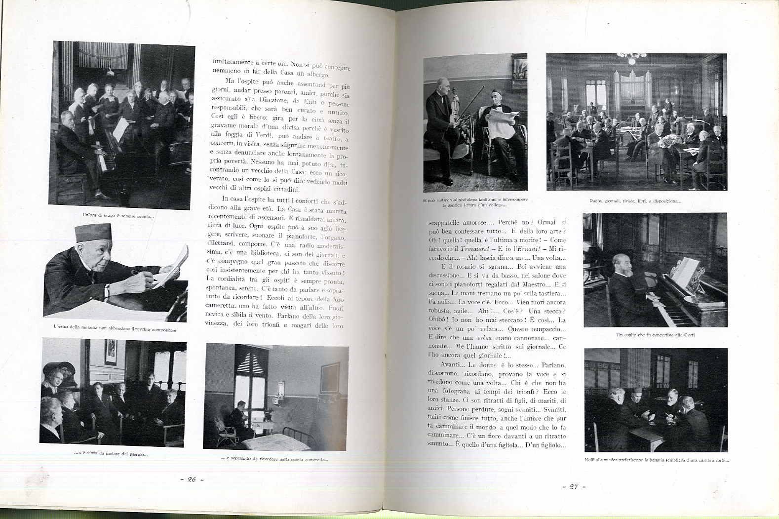 La Casa die Riposi per musicisti in Milano. Fondazione Giuseppe Verdi. 1937. Ca. 28 x 22 cm. 47 Seiten. Mit zahlreichen Abbildungen. Farbig illustrierter Orig.-Karton. Festschrift zum 35jährigen Bestehen des von Verdi initiierten Altersheims für Musiker. Mit dem Abdruck der Canzhone „Per la morte di Guiseppe Verdi“ von Gabriele d’Annunzio. In italienischer Sprache. Einband, Vorsatz und Seitenränder etwas fleckig.