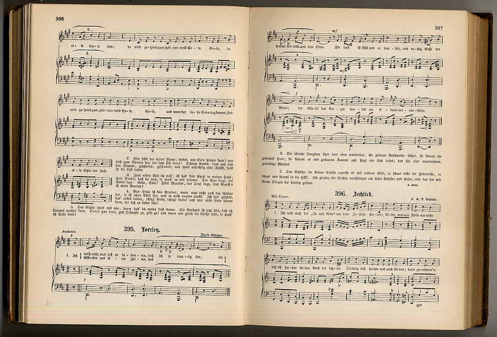 Härtel, August (Hrsg.): Deutsches Liederlexikon. Eine Sammlung der besten und beliebtesten Lieder und Gesänge des deutschen Volkes. Mit Begleitung des Pianoforte. 9. Auflage. Leipzig, Philipp Reclam jun., um 1900. Ca. 26 x 17,5 cm. VIII S., 767 Seiten. Orig.-Halbleinenband. Einband berieben und Kanten bestoßen. Vorsatz etwas gelockert. Enthält 976 Liedtexte mit Noten.